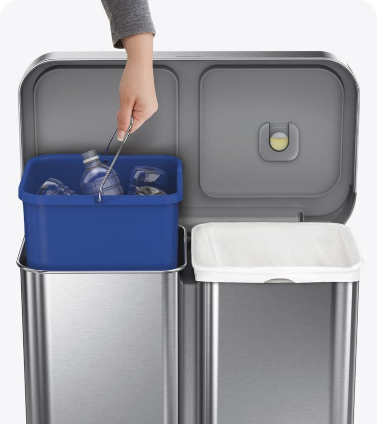 デュアルコンパートメントでゴミをきれいに分別できます! 普段のゴミ用のダストボックスもリサイクル用のインナーボックスも十分な容量があり、手軽にゴミを処理できます。