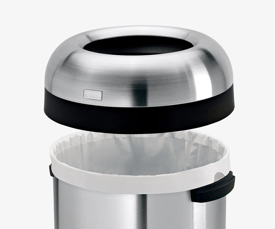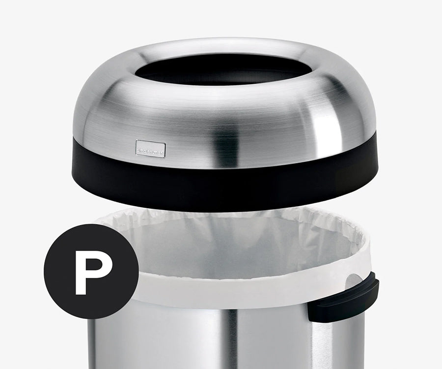 フタを持ち上げるだけで交換がスムーズ。専用フィットのごみ袋がずれを防ぎ、見た目をすっきり保ちます。