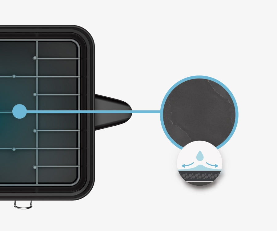 ドリップトレー(受け皿)は排水しやすい角度で設計されています。さらに親水性コーティングが水を薄く広げ、乾きやすくします。
