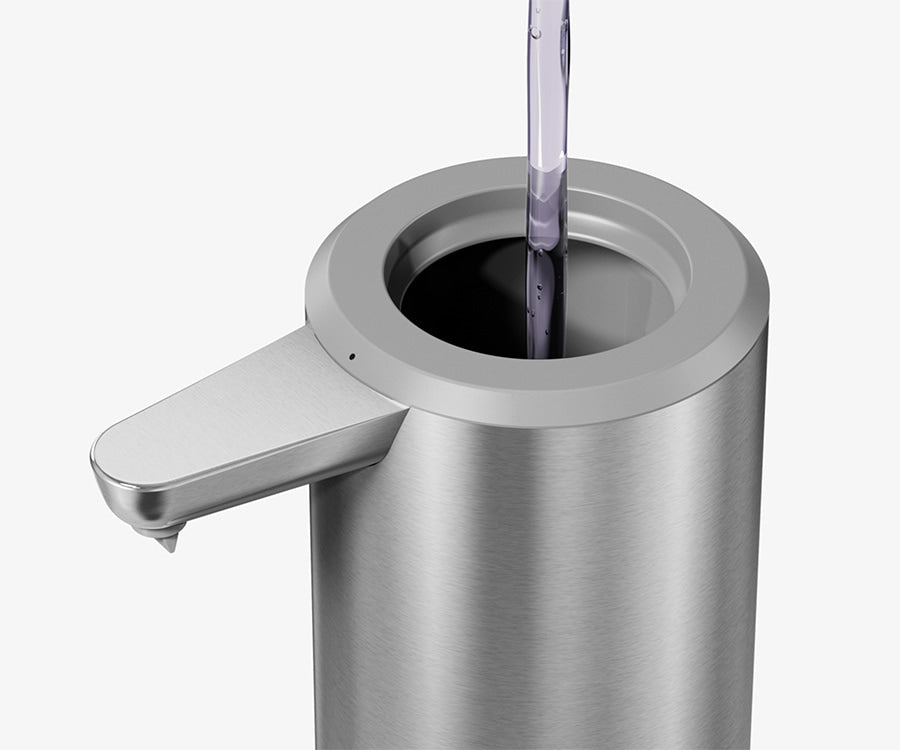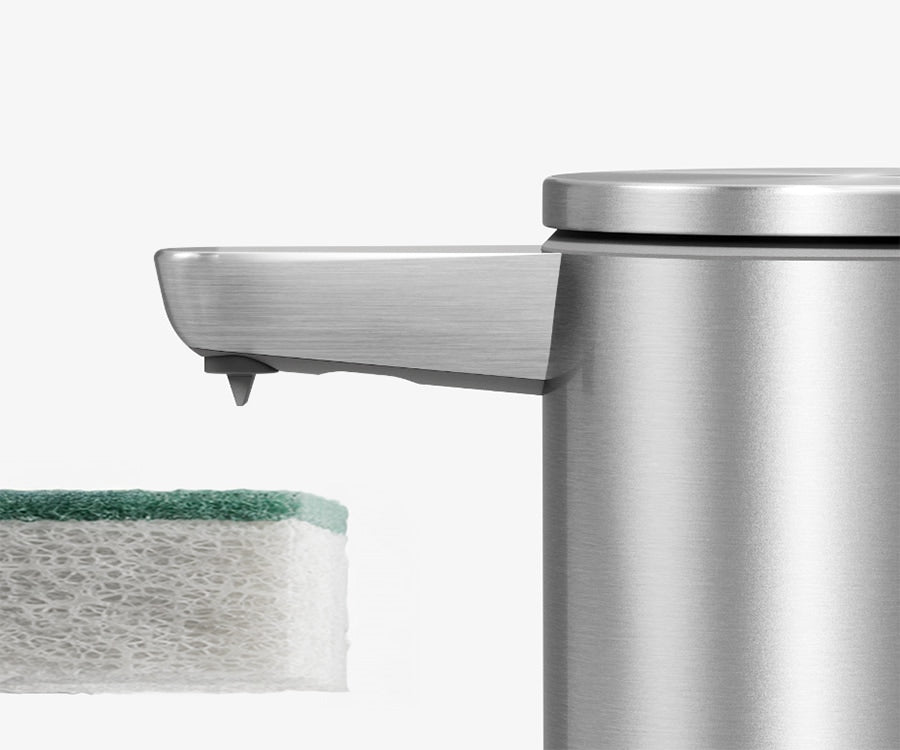 スポンジをかざすだけで、必要な量のソープを自動でディスペンス。ボトルに触れず、手元もシンク周りも清潔に保ちます。