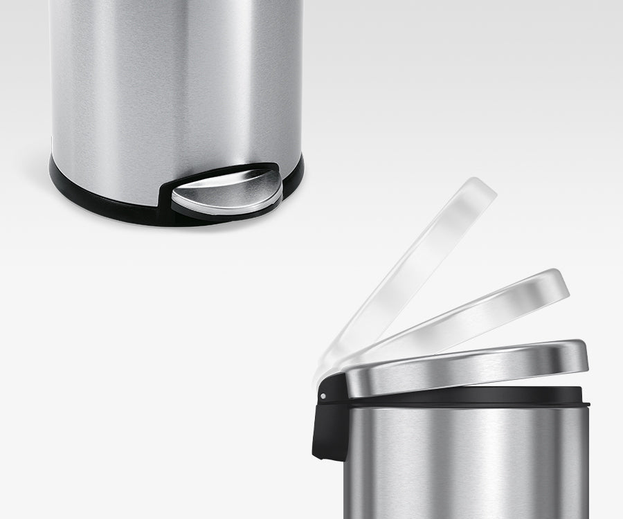 丈夫なスチールペダルは15万回(1日20回×20年)の使用に耐える設計です。さらに特許取得のリッドショック技術で、フタはゆっくり静かに閉まります。
