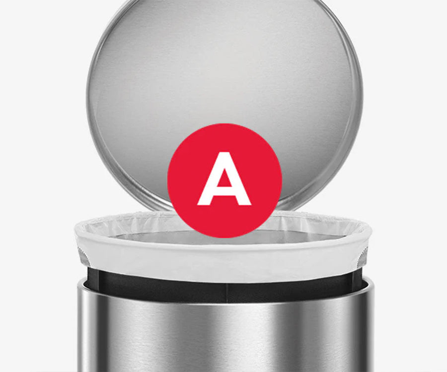 コード「A」ゴミ袋がぴったりフィットするよう設計されており、滑り落ちることなく外側からも見えません。丈夫なプラスチックと二重の縫い目で破れにくくなっています。