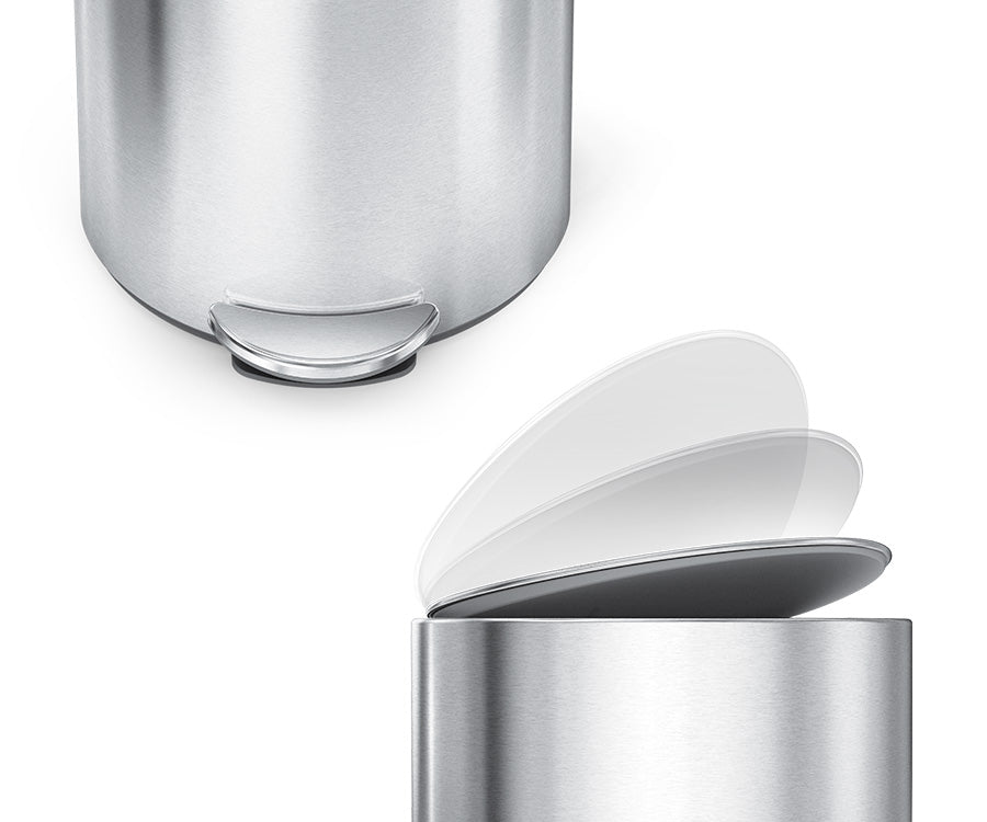 丈夫なスチールペダルは15万回(1日20回×20年)の使用に耐える設計です。さらに特許取得のリッドショック技術で、フタはゆっくり静かに閉まります。