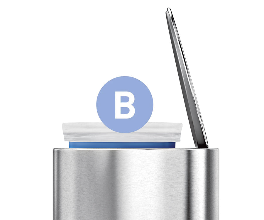 コード「B」ライナー(ゴミ袋)がぴったりフィットするよう設計されており、滑り落ちることなく外側からも見えません。丈夫なプラスチックと二重の縫い目で破れにくくなっています。